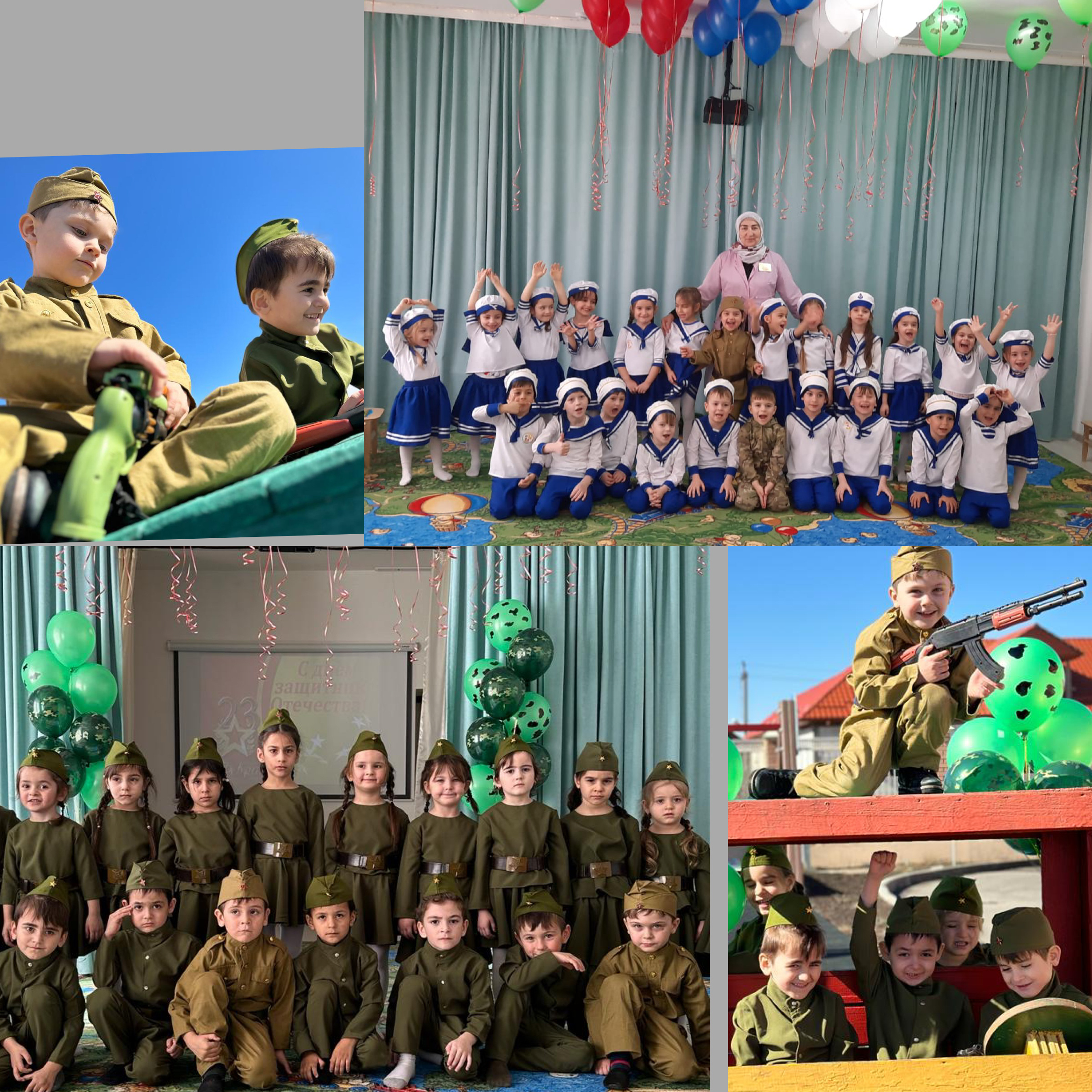 23.02.2023В МБДОУ "Детский сад №1 "Родина" прошли мероприятия, приуроченные ко Дню защитника Отечества. На празднике дети пели песни, читали стихи, танцевали, показывали сценки. Интересно и весело прошли эстафеты. Дети показали всю свою ловкость , силу и смекалку, перетягивали канат, преодолевали препятствия, соревновались в меткости.Все получили хорошее настроение и патриотический настрой.
