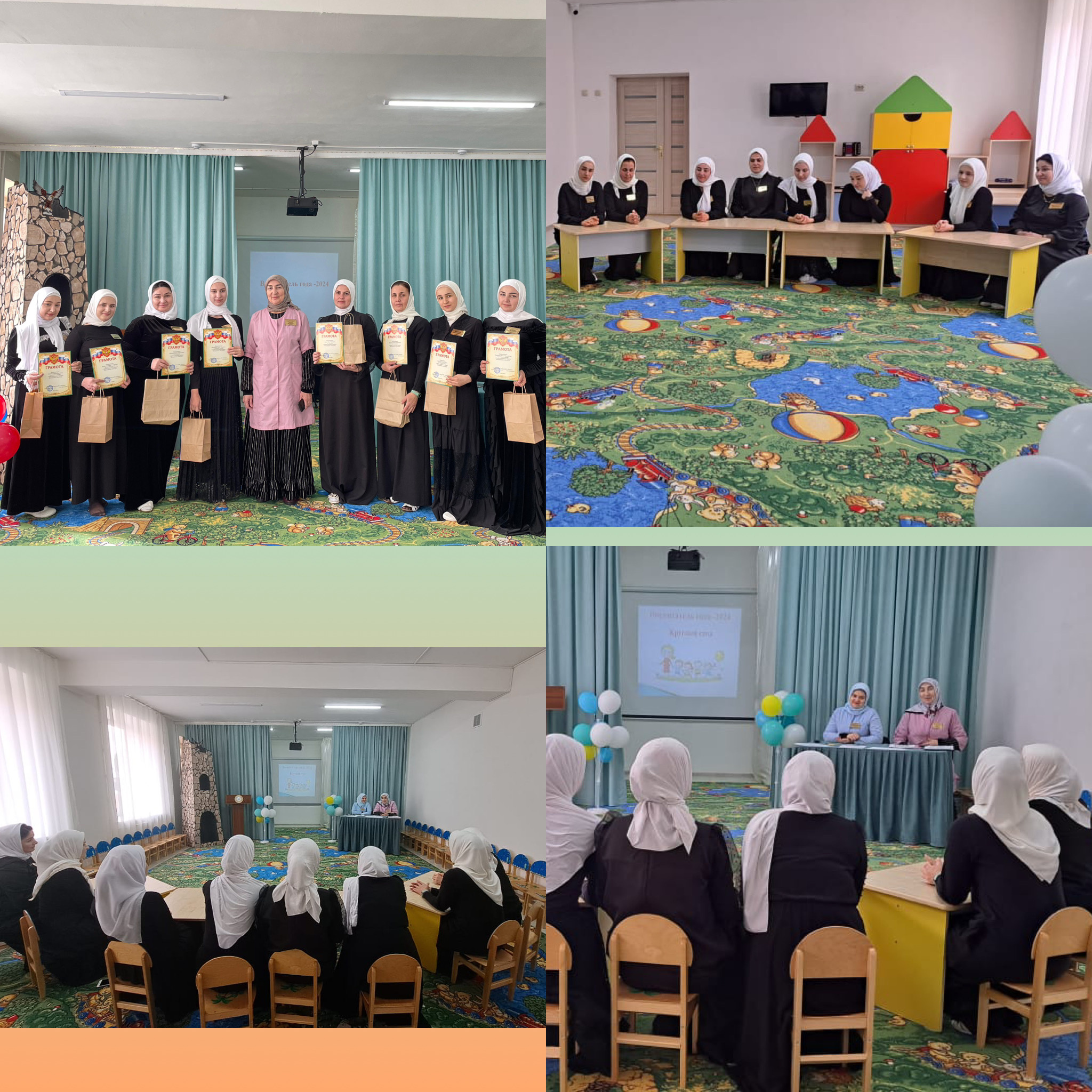 09.02.2024Муниципальное бюджетное дошкольное образовательное учреждение «Детский сад № 1 «Родина» с.Шуани Гудермесского муниципального района». В актовом зале детского сада подведены итоги конкурса "Воспитатель года - 2024"